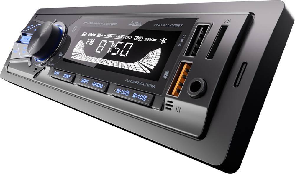 Приложение для iOS и Android Максимальная выходная мощность: 36Вт Номинальная выходная мощность (при КНИ менее 1%): 12Вт Bluetooth (A2DP) 2xUSB/micro SD для воспроизведения Mp3, FLAC Зарядка 2xUSB Синяя подсветка кнопок Вход AUX (3,5 мм джек) Линейный выход RCA (1 пара) Цифровой радио-тюнер Память на 18 FM радиостанций Авто поиск, авто запоминание станций Несъемная панель Жидкокристаллический (VA) дисплей ISO разъем (коннектор приобретается отдельно)