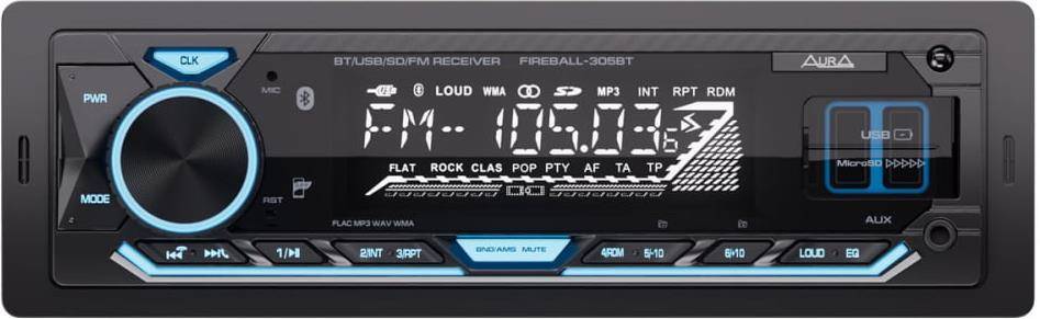 Автомобильный USB/SD ресивер Максимальная выходная мощность: 51Вт Номинальная выходная мощность (при КНИ менее 1%): 16Вт Bluetooth (A2DP) 2xUSB/SD для воспроизведения Mp3, FLAC Зарядка USB 1.2A Голубая подсветка кнопок Вход AUX (3,5 мм джек) Линейный выход RCA (2 пары) Цифровой радио-тюнер Память на 18 FM радиостанций Авто поиск, авто запоминание станций ID3 тэги (английский язык) Несъемная панель Жидкокристаллический (VA) дисплей ISO разъем (ISO коннектор в комплекте)