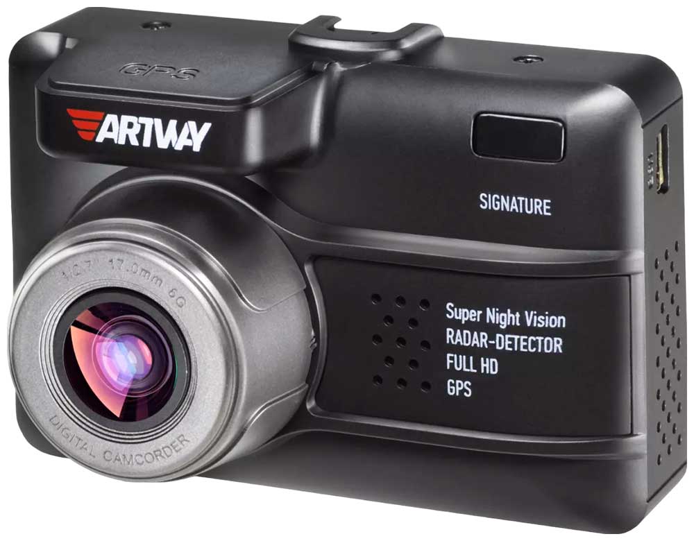 MD-109 это самое компактное signature combo 3 в 1 в 2-мя камерами Размеры корпуса составляют всего: 80 х 54 мм. Устройство Artway MD-109 не загораживает обзор водителя, занимает совсем немного места за зеркалом заднего вида и больше напоминает видеорегистратор. Однако, это полноценное комбо-устройство, которое выполняет функции съемки, детектирования радарных комплексов и оповещения по базе камер GPS