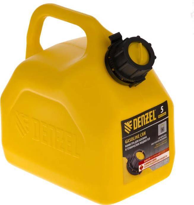 Премиумканистра DENZEL 53128 объемом 5 л используется для хранения и транспортировки ГСМ. Ее удобно брать в дорогу, а также можно поставить на даче, или в гараже. Канистра пригодится для заправки автомобиля и бензотехники.ПреимуществаПрочность и высокий ресурс — изделие выполнено из полимера высокой плотности ПЭНД с присадками, не допускающими скопления статического разряда.Продуманная конструкция — носик убирается внутрь, что удобно для транспортировки канистры.Герметичность — резьбовая крышка предотвращает утечку и испарение жидкостей.Полупрозрачный корпус — можно отслеживать уровень заполнения канистры.Компактность — канистра на 5 л легко помещается в багажник автомобиля.