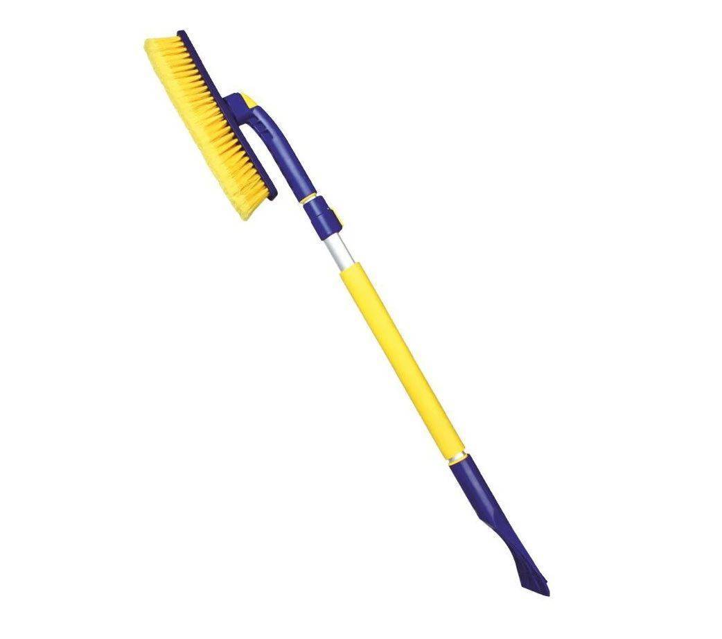 Особенности: поворотная головка, съемный скребок, мягкая накладка на рукоятке, распушенная щетина