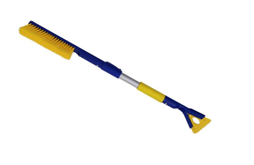 Зимняя щетка предназначена для деликатного удаления снега и льда с поверхности автомобиля. Щетка отличается мягкой, распушенной на конце щетиной. Это позволяет бережно и эффективно очищать кузов и стекла. Телескопическая ручка регулируется по длине в 3 положениях для удобной очистки крыши автомобиля и других труднодоступных поверхностей. Длина щетки в сложенном виде - 78 см, в разложенном - 100 см. Заданное положение щетки надежно удерживается фиксатором. Съемный поворотный скребок для очистки стекол ото льда незаменим в зимние морозы. Он легко и аккуратно очищает наледь с любых поверхностей засчет разных лезвий на 3 сторонах: с засечками для сильно примерзшего льда, стандартного тонкого и толстого для больших объемов наледи. Антискользящая ручка EVA не застывает на холоде. Благодаря этому материалу щетку комфортно использовать даже в сильные морозы. Зимние щетки адаптированы к российским условиям за счет применения материалов с неизменными свойствами в широком диапазоне температур.