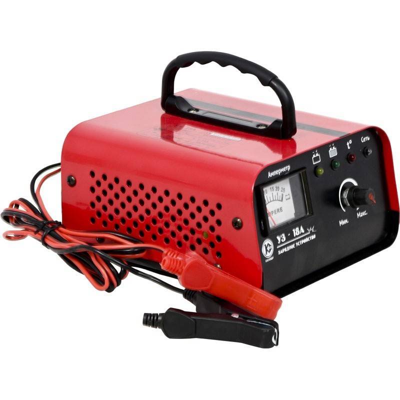 Зарядное устройство Калибр УЗ-18А предназначено для зарядки аккумуляторных батарей (А.Б.) бензиновых и дизельных двигателей автомобилей,мотоциклов,лодок (6В,12В и 24В) и т.п.,встроенный вентилятор.Характеристики,Номинальное напряжение 220 В,Частота 50 Гц,Напряжение зарядки 12 В,Диапазоны плавной регулировки выходного тока 4-18 А,Выходное напряжение (равно напряжению на клеммах АБ) 0-14.8 В,Ёмкость заряжаемой аккумуляторной батареи 7-270 Ач,Степень защиты (МЭК 60529) IP20,Встроенный вентилятор +,Габариты в упаковке (ДхШхВ) 245х185х120 мм,Вес (брутто/нетто) 1.5/1.4 кг.