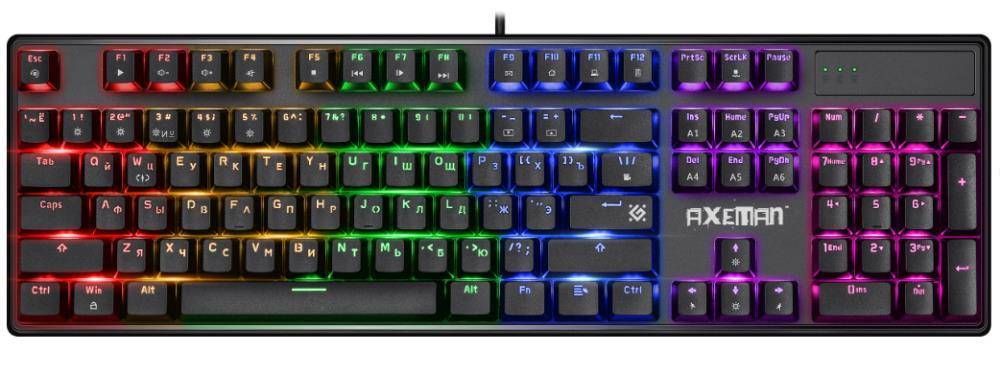 Тип клавиатуры: Gaming/Keyboard onlyНаличие USB: даЯзык клавиатуры: ENG|RUSПодсветка клавиатуры: даЦвет: черныйОбъем: 0.003м3 Вес без упаковки: 0.78кг Вес в упаковке: 0.94кг