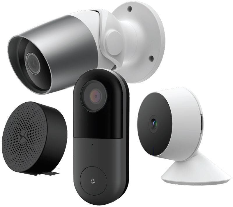 Набор Видеонаблюдение включает в себя внутреннюю и внешнюю камеру, так же звонок и видеодомофон SLS.