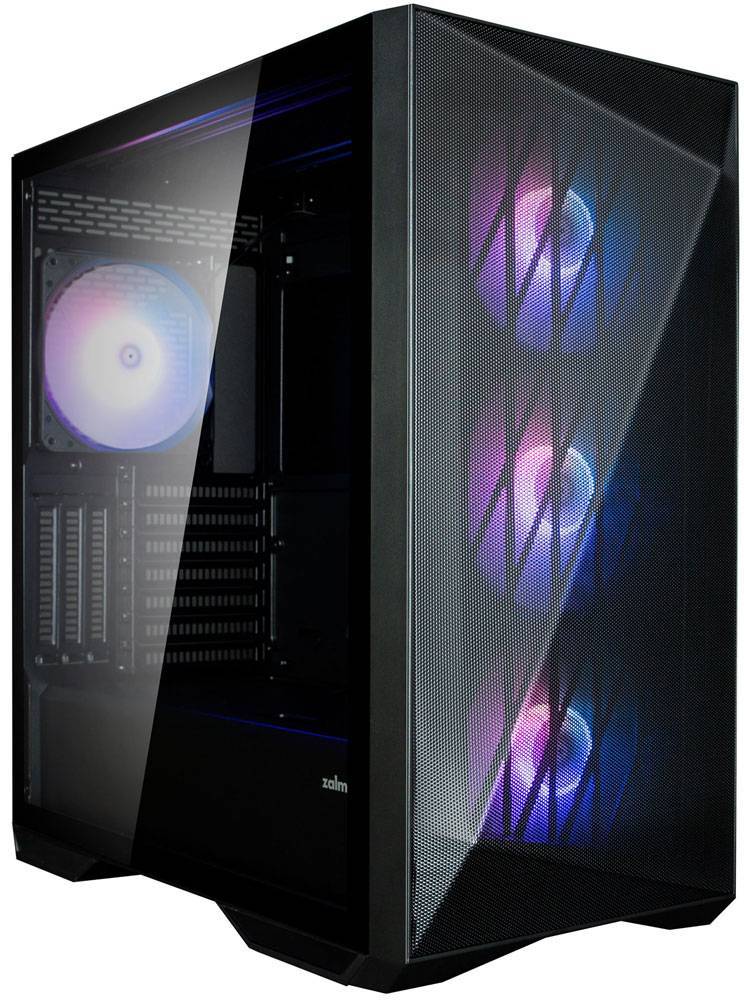 Корпус выполнен в классическом черном цвете и изготовлен из пластика, стали и стекла. Боковая стенка оснащена закаленным стеклом, что позволяет вам любоваться внутренним содержимым вашего ПК.