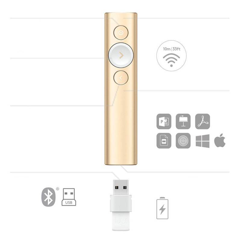 Мгновенно подключайте Spotlight к любому совместимому компьютеру через USB-приемник или подключайтесь с помощью беспроводной технологии Bluetooth с низким энергопотреблением. Spotlight также поддерживает ваш компьютер подключенным и в режиме бодрствования пока вы рядом.