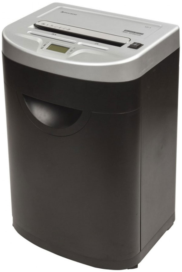 Данный уничтожитель снабжен надежными ножами, способными уничтожать скобы от степлера, что облегчает уничтожение скрепленных документов, экономя время потребителя. Отличительной чертой уничтожителя документов BRAUBERG является низкий уровень шума - всего до 56 Дб, т.е. тише, чем звук, издаваемый электробритвой. Шредер оснащен защитой двигателя от перегрева, что является частой причиной выхода этой дорогостоящей запчасти из строя на уничтожителях бумаги других производителей. Под входом для пластиковых карт/компакт дисков предусмотрена отдельная небольшая корзина для того, чтобы отходы от карт и дисков не смешивались с отходами от бумаги, уничтожаемой через основной вход. Уничтожитель можно легко перемещать по офису, поскольку он оснащен колесами. При его установке в определенном месте можно зафиксировать передние колеса, чтобы шредер не перемещался.
