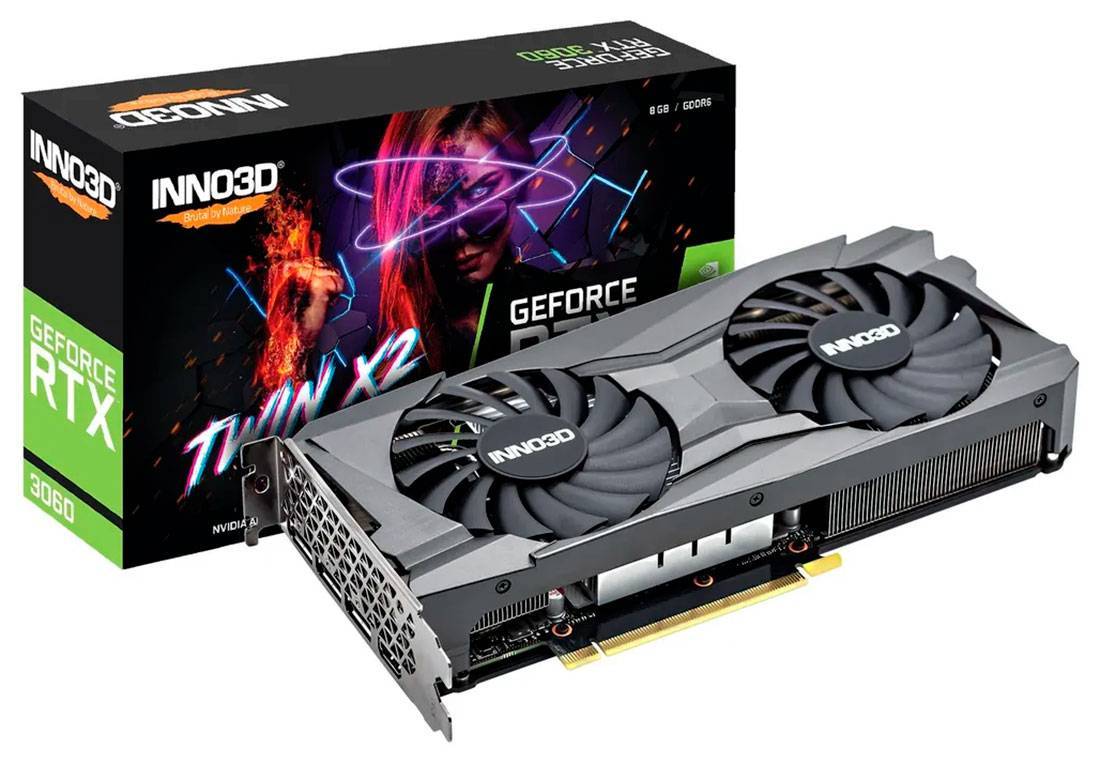 Видеокарта INNO3D GeForce RTX 3060 TWIN X2 сочетает в себе мощный вычислительный потенциал, эффективное охлаждение и компактные габариты. Она содержит архитектуру NVIDIA Ampere и оснащена 8 ГБ памяти стандарта GDDR6. Тактовая частота процессора способна достигать 1777 МГц в режиме разгона.