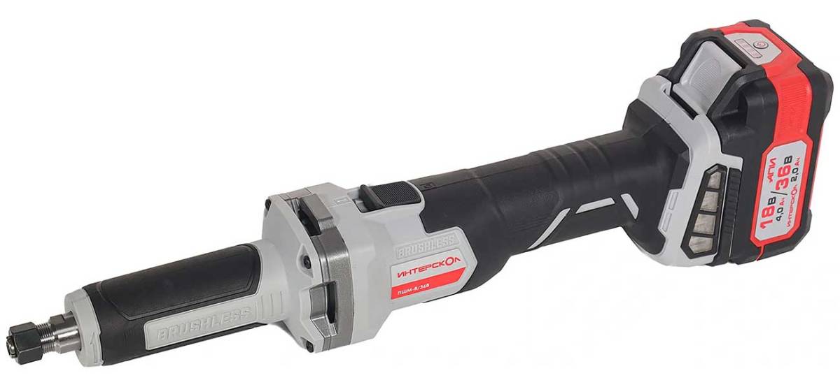 Прямошлифовальные машины предназначены для выполнения различных операций с применением борфрез, шлифовальных головок различных типов и т.д. С помощью соответствующей оснастки они могут в той или иной степени заменить целый ряд инструмента, в частности, дрель, фрезер и угловую шлифовальную машину. Но лучше всего способности прямошлифовальных машин раскрываются при обработке внутренних поверхностей труб, особенно небольшого диаметра, полостей на деталях (расточка, углубление, шлифовка, полировка, изменение формы), а также при решении прочих подобных задач. Питание от аккумуляторных батарей (АКБ) с высокотоковыми аккумуляторами и применение инновационного бесщеточного двигателя с цифровым управлением делают инструмент максимально мобильным и удобным в использовании при сохранении достаточной мощности на уровне сетевых аналогов. Модель имеет цанговый зажим под оснастку с хвостовиком 6 мм, а шпиндель опирается на надежные и долговечные подшипники качения. Ползунковый выключатель с блокировкой непреднамеренного включения, функция плавного пуска и обрезиненный корпус в местах хвата обеспечивают безопасность и удобство работы.
