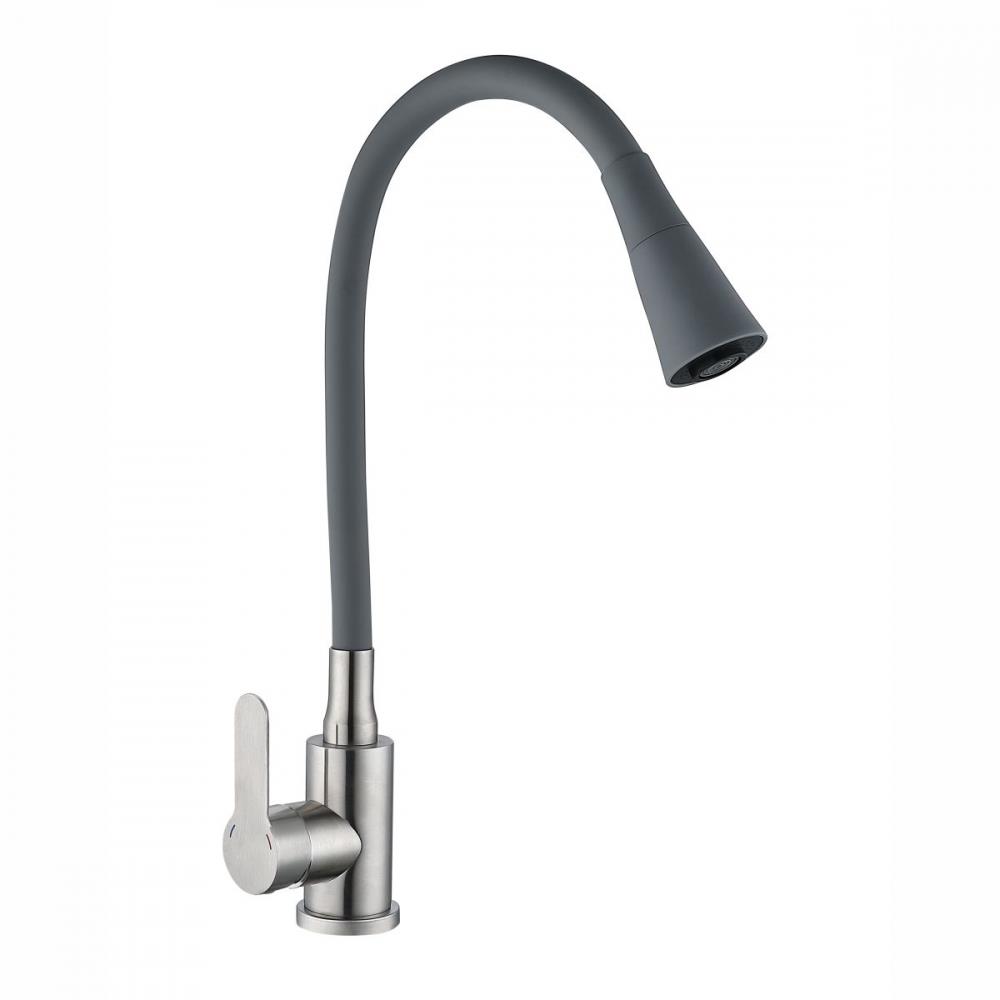 Смеситель для кухни с гибким изливом, серия Садко, АНТЕЙ - Материал: нержавеющая сталь (SUS304) - Вес смесителя: 1,220 кг - Цвет: сатин + серый - Картридж: o35мм, пластиковая с керамическими пластинами, WANHAI - Излив: поворотный, высокий, гибкий - Аэратор: пластиковый, съемный, 2-х режимный - Крепление: FAST FIX (гайка) из 201 стали В комплекте: гибкая подводка 35см (2шт.), крепление, декоративная подставка под смеситель (1шт.), резиновая прокладка (1шт.), резиновое уплотнительное кольцо (1шт.), пластиковая шайба (1шт.), паспорт смесителя (1 шт.)