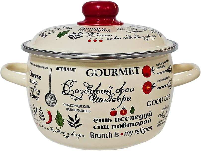 С нержавеющим ободком, Объем, л./размер, см: 4.0 л Материал: эмалированная сталь Коллекция/серия: Шедевры Торговая марка: Appetite Толщина дна: 0.8 Толщина стенок: 0.8 Источник тепла: Все виды плит Крышка: эмалированная Внутреннее покрытие: эмаль Внешнее покрытие: эмаль