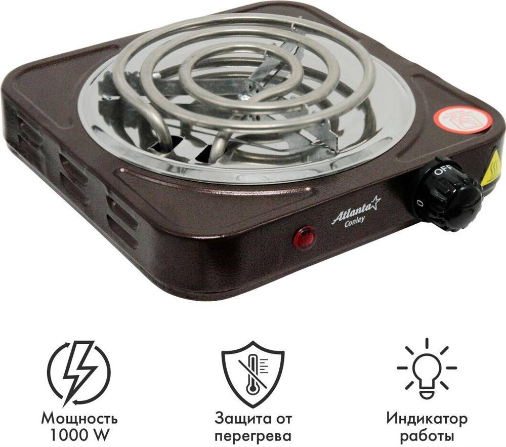 Электроплитка одноконфорочная ATLANTA ATH-1734 (brown)