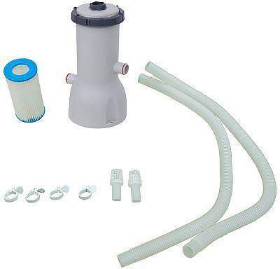 Размер: 24*25*28 см Материал: полипропилен Тип: насос Напряжение: 220 - 240 В, 50 Гц, Мощность: 90 Вт. Класс защиты от поражения электрическим током I. Степень защиты от воды IPX7. Максимальная температура жидкости 35 °С. Производительность: 3750 л/час (1000 галл./час) Общий расход воды: 2839 л/час (750 галл./час) Для использования с бассейнами емкостью 1100-20000 л В комплекте: 1 фильтр-насос, 1 картридж для фильтра, 2 шланга, 2 зажима, 2 сетчатых фильтра.