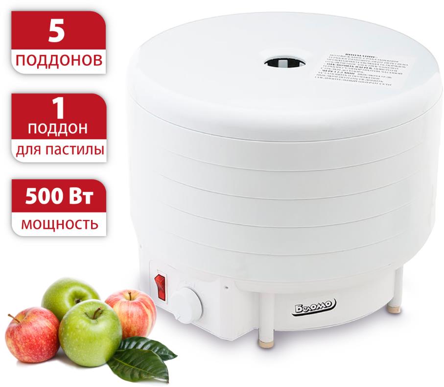 Мощность устройства (Вт) 500 Вт, Тип управления механическое, Тип сушки для овощей конвекционная, Форма сушилки для овощей сборная из поддонов, Количество поддонов 5 шт., Высота поддона 3.2 см, Материал поддонов пищевой пластик, Доп. опции сушки для овощей вяление мяса и рыбы; регулировка температуры сушки, Применение сушка пастилы; сушка овощей; сушка фруктов, Минимальная температура 35 градусов, Максимальная температура 75 градусов, Страна производства Беларусь