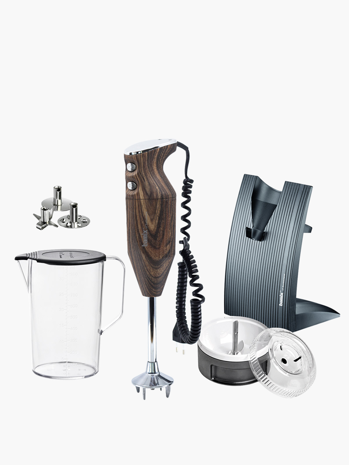 Погружной блендер bamix Design Edition M200 сочетает в себе профессиональную производительность и эффектный художественный стиль. Изготовленный вручную в Швейцарии и оснащенный мощным двигателем мощностью 200 Вт, он предлагает непревзойденную точность, универсальность и элегантность – как в функциональности, так и во внешнем виде.