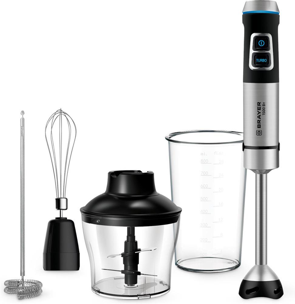 1257BR Погружной блендер BRAYER, 1500 Вт, капуч, венч, стак 800, измельч. 600, титан. лезв.