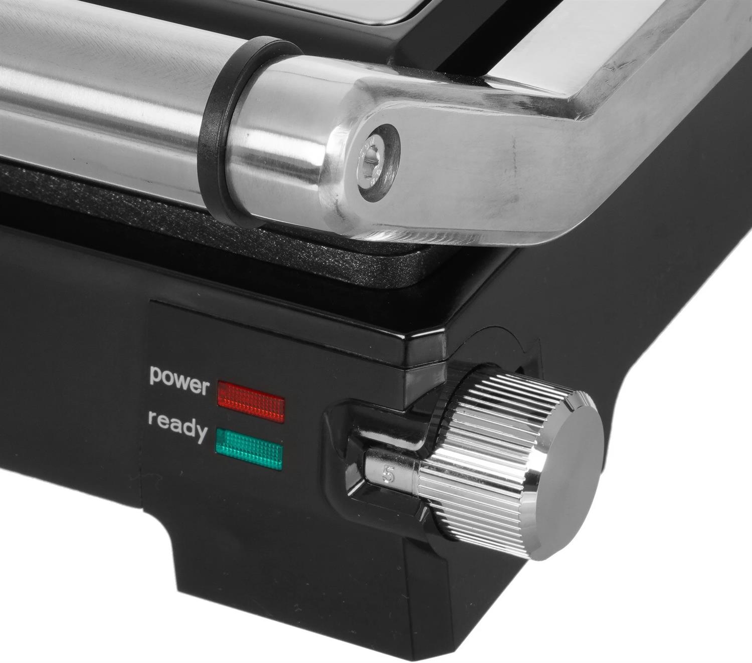 Мощность 2000 Вт Антипригарное покрытие Размер пластин 34*23,5 см Максимальная температура 230° Регулировать расстояния между пластинами по высоте продукта Корпус из высокопрочного пластика, декорирован нержавеющей сталью Открытие крышки 105-180 ° Регулировка температуры Поддон для сбора жира Индикатор готовности и питания Электропитание 220-240 В, 50 Гц
