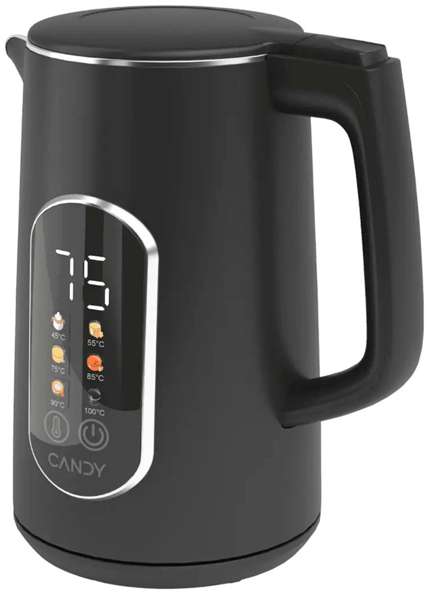 Корпус электрочайника Candy CK-400 выполнен из пластика и нержавеющей стали, оформлен в черном цвете. Двойные стенки обеспечивают дополнительную теплоизоляцию и безопасность. Залив воды возможен без открытия крышки.