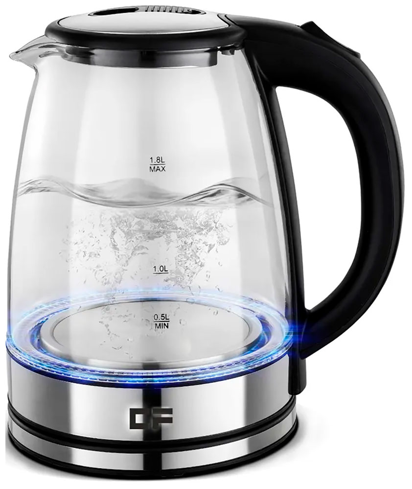 Электрические чайники CF это качественные и надежные устройства, которые станут идеальным выбором для тех, кто ценит комфорт и стиль. Этот стеклянный электрочайник с подсветкой объемом 1,8 л и мощностью 1500 Вт быстро кипятит воду за несколько минут, обеспечивая удобство в использовании.