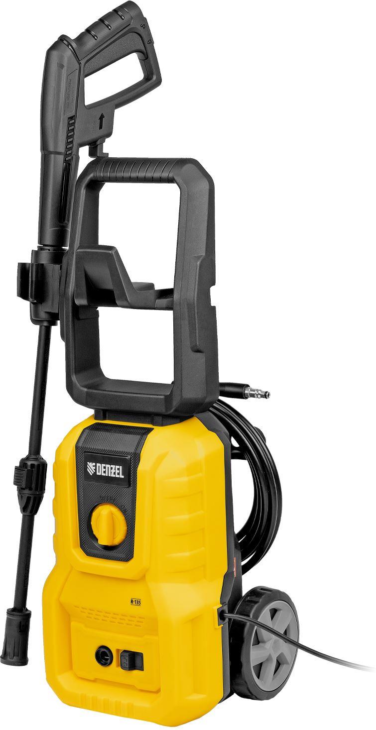 Моечная машина высокого давления Denzel R-135 58261 мощностью 1600 Вт поддерживает максимальное рабочее давление до 135 бар и обеспечивает объем подачи воды 390 л/ч. Позволяет быстро и эффективно очистить садовый инвентарь, фасад дома, дорожку, отмыть автомобиль и т.д. Оснащена самовсасывающим помпой, поэтому может работать даже без подключения к водопроводу — подойдет любой резервуар или емкость с водой. Машина оптимальна для бытового использования. Преимущества Долговечность — надежная алюминиевая помпа со стальными плунжерами выдерживает высокие нагрузки и обеспечивает стабильное давление в течение всего срока службы машины. Эффективное очищение — для получения качественного результата можно использовать моющее средство (внешний пеногенератор с функцией улучшенного пенообразования входит в комплект поставки). Простая подготовка к работе — быстросъемный адаптер облегчает подключение шланга подачи воды. Защита от засорения — фильтр входного штуцера задерживает посторонние частицы, продлевая срок службы помпы. Продуманная комплектация — машина поставляется с иглой для прочистки сопла, что упрощает уход за техникой. Класс защиты II — токопроводящие элементы надежно изолированы для защиты пользователя от получения электротравмы. Безопасность — перед началом работы необходимо разблокировать рычаг моечного пистолета для предотвращения случайного запуска. Защита от превышения максимально допустимого давления — машина оснащена перепускным клапаном, манометрический выключатель оста…