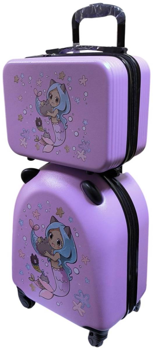 Набор чемоданов 2 шт выполнен в нежно сиреневом цвете с одинаковым принтом.