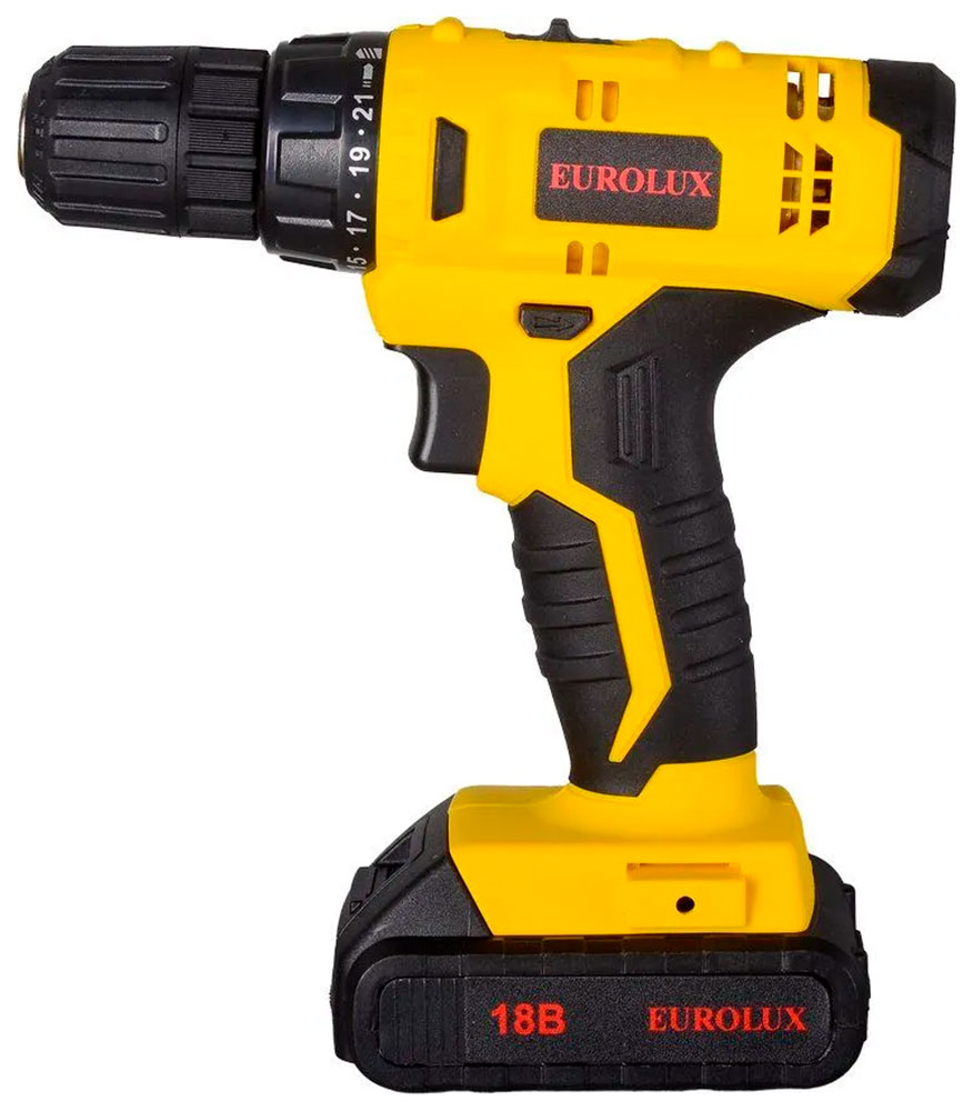 EUROLUX ДА-18/2Li принадлежит к автономным, аккумуляторным дрелям-шуруповертам. Инструмент предназначен для сверления отверстий в дереве, пластмассе и металле или для проведения работ, связанных с закручиванием шурупов в различные по плотности материалы.