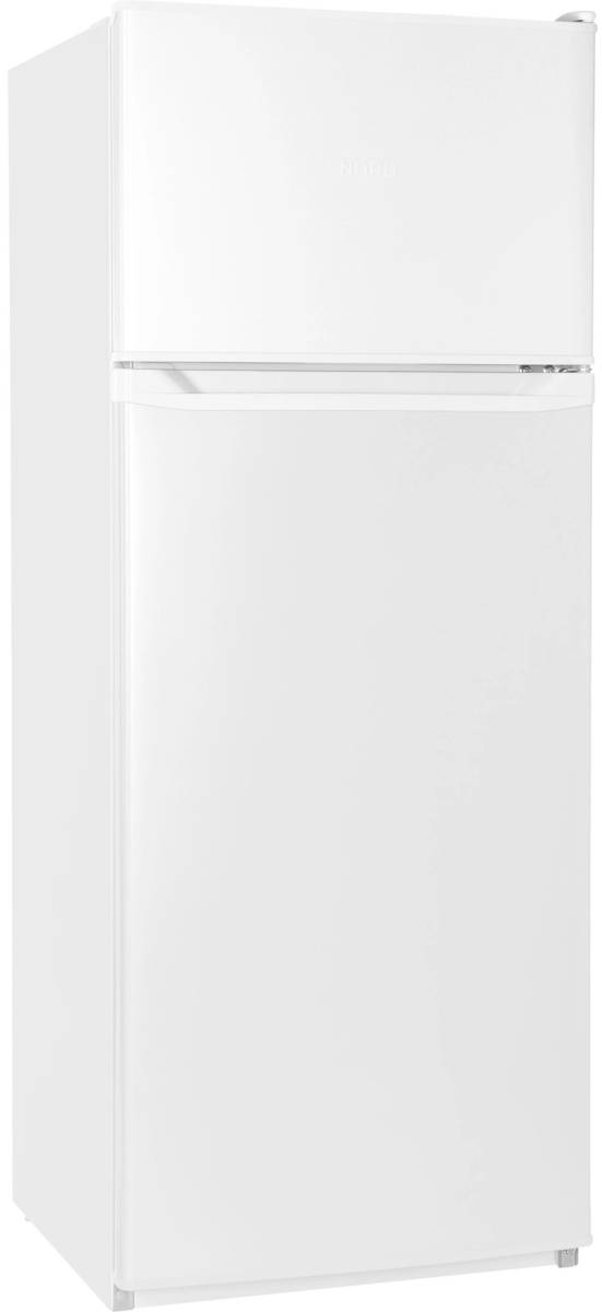Двухкамерный отдельностоящий холодильник NORD NRT 141 с верхним расположением морозильной камеры имеет общий объем 261 литров и высоту 150 см.