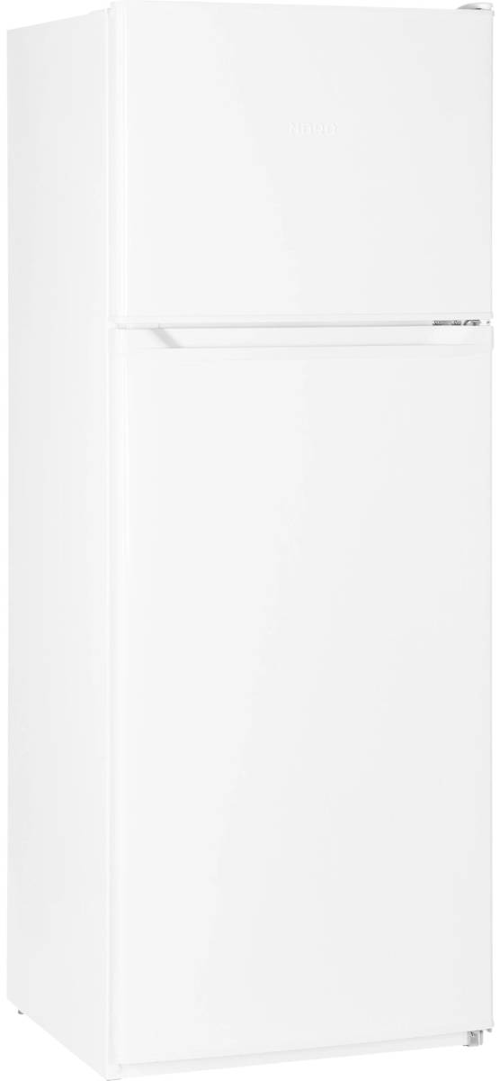 Двухкамерный отдельностоящий холодильник NORD NRT 145 с верхним расположением морозильной камеры имеет общий объем 278 литров и высоту 155 см.