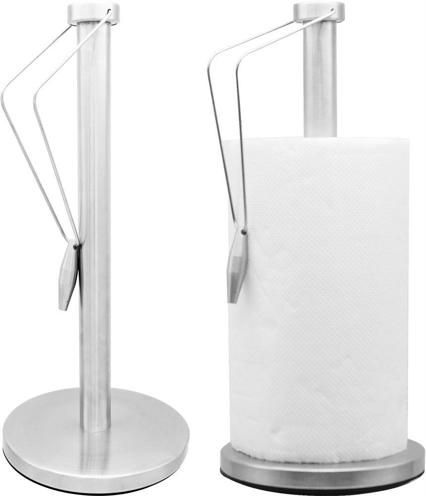 Держатель Для Кухонных Полотенец, Съемная Сборка, Высокое Качество Исполнения Из Матовой Стали. Тяжелое Утяжеленное Дно, Легко Очистить, Экологически Для Окружающей, Устойчивость И Простое Использование. Подходит Для Всех Рулонов Полотенец. Подвесная Гирька И Держатель Препятствуют Нежелательному Раскручиванию Рулона. Размеры: Диаметр 15 см. x Высота 35 см.