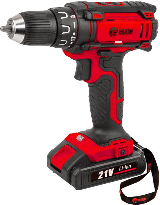 Дрель-шуруповерт аккумуляторная безударная Edon AD-21A, предназначена для закручивания, отворачивания винтов и шурупов, сверления отверстий в различных конструкционных материалах (в том числе металле, дереве, пластмассе и т.д.). Максимальный крутящий момент - 30 Н•м.; Емкость аккумулятора - 2 А•ч.; Напряжение аккумулятора - 21 В.; Макс. число оборотов холостого хода: 0 - 450 об/мин.; 0 - 1450 об/мин.; Диаметр патрона, макс. - 10 мм.; Вес инструмента с аккумулятором - 1,2 кг