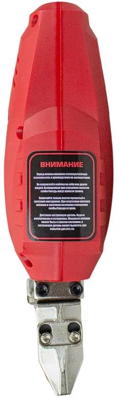 Механизм привода степлера электрический регулятор силы удара; блокировка кнопки; защита от двойного срабатывания Емкость магазина степлера 100 шт. Нейлер работает от стандартной электросети 220В и обладает мощностью 2300 Вт, обеспечивая производительность до 35 ударов в минуту. Степлер мебельный поддерживает использование гвоздей и скоб различных размеров: длина гвоздей от 10 до 30 мм, скоб — от 10 до 22 мм. С