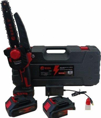 Мини-пила цепная аккумуляторная Edon UNS-21/8BL - аккумуляторный инструмент, предназначенный для обработки кустов, небольших деревьев, распила фанеры и ДСП. Напряжение аккумулятора - 21 В.; Частота вращения шпинделя на холостом ходу - 4000 об/мин.; Скорость движения цепи - 9 м/с.; Емкость аккумулятора - 2,0 Ач.; Длина шины - 8 "; Длина шины - 20,32 см.; Толщина ведущего звена - 1,1 мм.; Шаг цепи - 1/4 "; Количество звеньев - 45 шт.