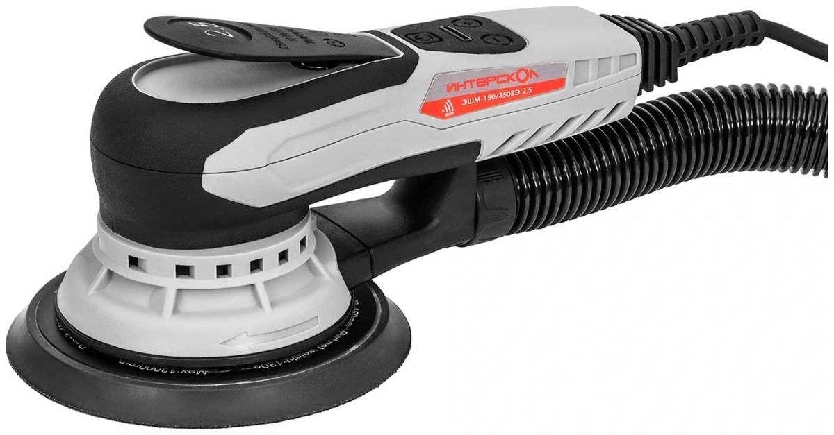 Эксцентриковые профессиональные шлифмашины ИНТЕРСКОЛ ЭШМ-125/350Э и ИНТЕРСКОЛ ЭШМ-125/350Э оборудованы бесщеточным (вентильным) сетевым двигателем, работающим под управлением цифрового электронного блока. Повышенный коэффициент полезного действия двигателя и отсутствие редуктора обеспечивают шлифмашине высокую энергоэффективность и рекордно малый вес. В сочетании со схемой динамической балансировки это снижает массу изделия и позволяет оператору машины эффективно шлифовать длительное время, не уставая. Эквивалентная мощность в пересчете на традиционную схему с коллекторным двигателем и редуктором составляет 500Вт, что достаточно для всех операций эксцентрикового шлифования.