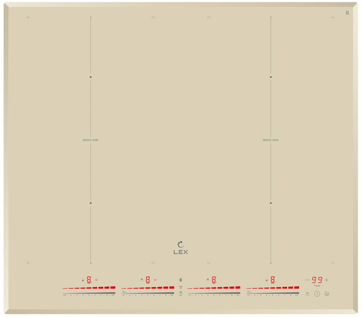 Электрическая индукционная варочная панель LEX EVI 641C I IV имеет четыре конфорки и индивидуальное слайдерное управление для каждой зоны нагрева. Ширина для встраивания 600 мм. Инверторный индукционный нагревательный элемент демонстрирует высокую скорость нагрева, существенно экономит электроэнергию и сокращает время приготовления блюд. Панель имеет FlexZone расширенной конфигурации, которую удобно использовать для посуды нестандартных размера и формы. Модель снабжена кнопкой блокировки панели, индикатором остаточного тепла, защитой от перегрева, распознаванием наличия посуды. Наличие функции Boost позволяет ускорить процессы приготовления. Функция StopnGo дает возможность при необходимости одним нажатием приостановить и продолжить работу с сохранением температурных режимов и таймера. Несмотря на общее мнение, что поверхность в индукционной плите не нагревается, это не совсем так. Она нагревается от самой посуды и нужно быть аккуратными. Сразу после снятия кастрюли или сковороды, поверхность горячая, хотя и практически мгновенно остывает. И уже через несколько секунд её можно трогать рукой.