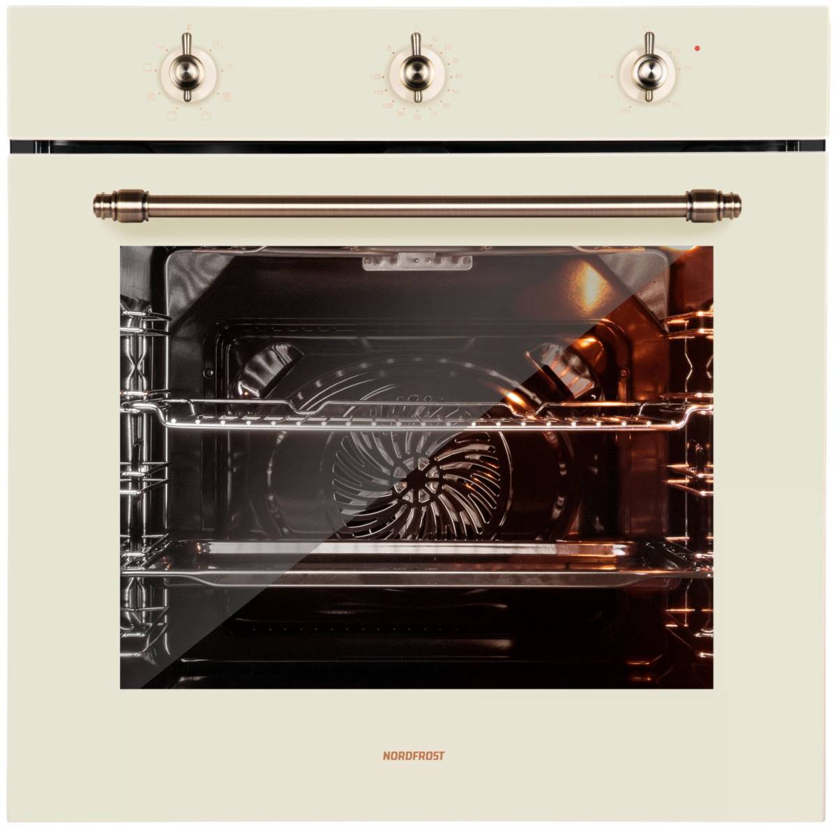 Встраиваемый электрический духовой шкаф NORDFROST HM 6080 YR общим объёмом 74 л, режимом конвекции и 8 программами нагрева идеален для создания кулинарных шедевров на вашей кухне.