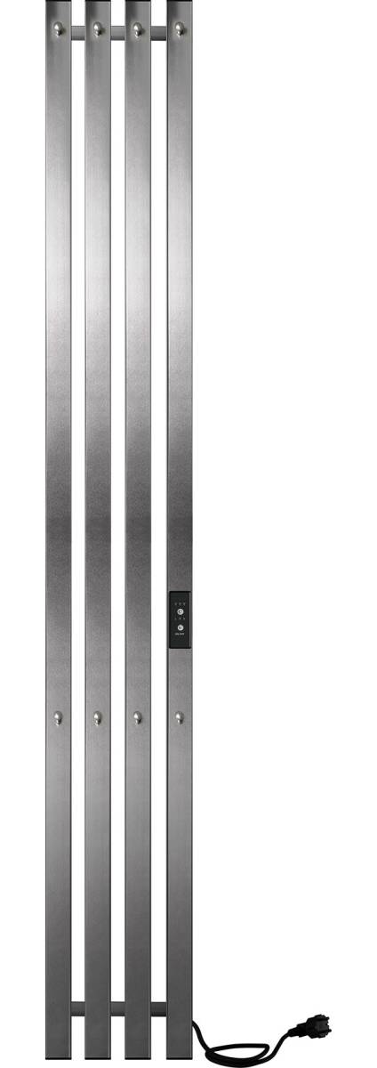 Полотенцесушитель электрический INDIGO Style PRO в цвете Graphite Metallic, имеет четыре стойки с крючками. Модель имеет терморегулятор нагрева, у которого три режима: 40, 45, 50 градусов и таймер на отключение через 2, 4, 6 часов.