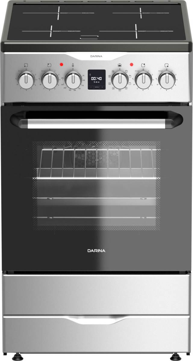 Объем духовки - 50л. Духовка имеет 9 режимов работы, оборудована терморегулятором, конвектором и электрическим грилем. 4 пары штампованных направляющих дают возможность разместить несколько противней одновременно. В комплекте с плитой прилагается решетка и набор из двух эмалированных поддонов. Техника DARINA поможет создать уютную и комфортную атмосферу в доме. Вы можете насладиться легкостью приготовления кулинарных блюд без лишних трат.