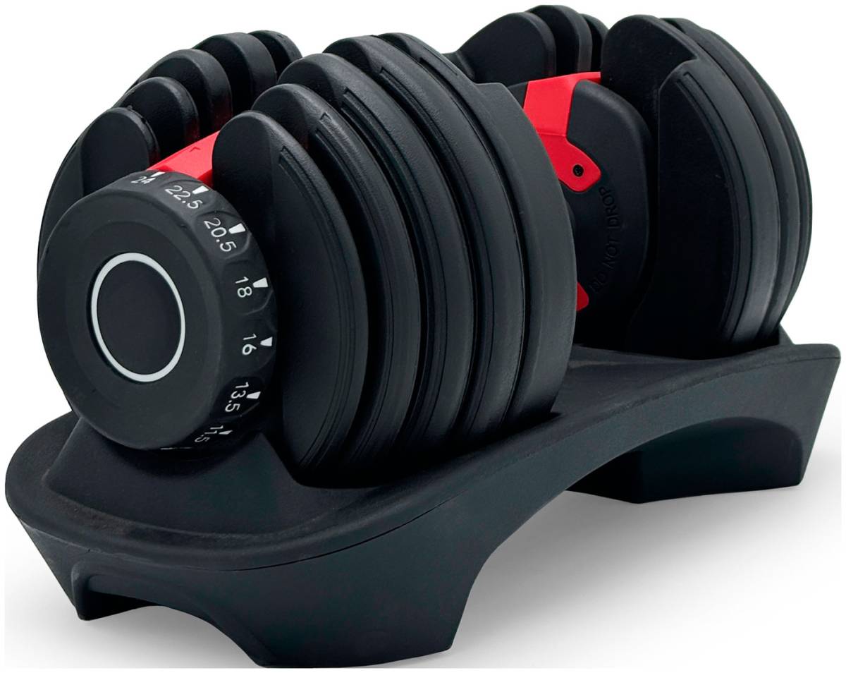 В отличие от наборных гантелей вес меняется не надеванием дисков на гриф, а простым поворотом специального крепежного механизма Поместите гантели на подставку и вращайте переключатель веса до нужного вам значения. Лишние диски остаются в подставке. Гантели могут использоваться для силовых и жиросжигающих тренировок, дома или в тренажерном зале.
