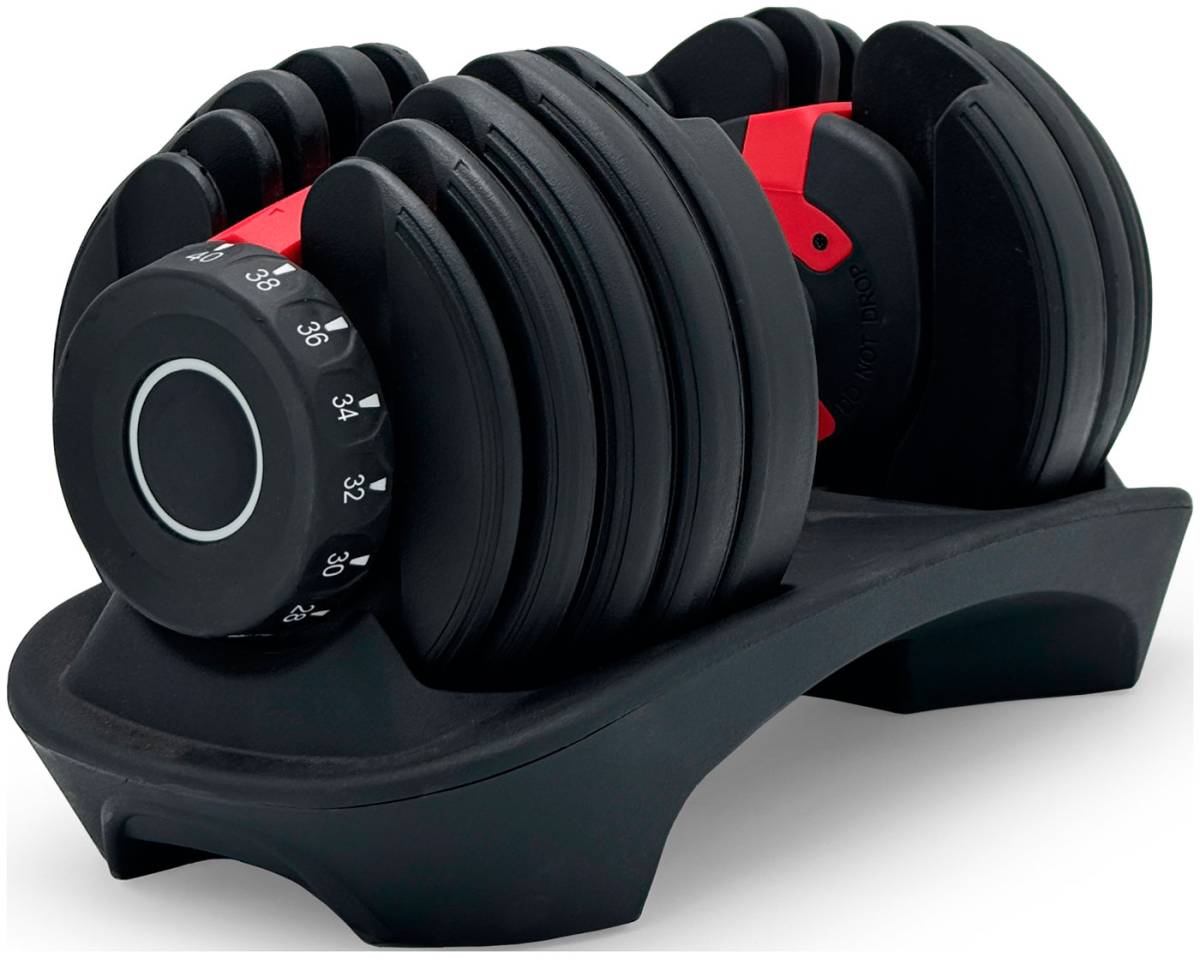 В отличие от наборных гантелей вес меняется не надеванием дисков на гриф, а простым поворотом специального крепежного механизма Поместите гантели на подставку и вращайте переключатель веса до нужного вам значения. Лишние диски остаются в подставке. Гантели могут использоваться для силовых и жиросжигающих тренировок, дома или в тренажерном зале.