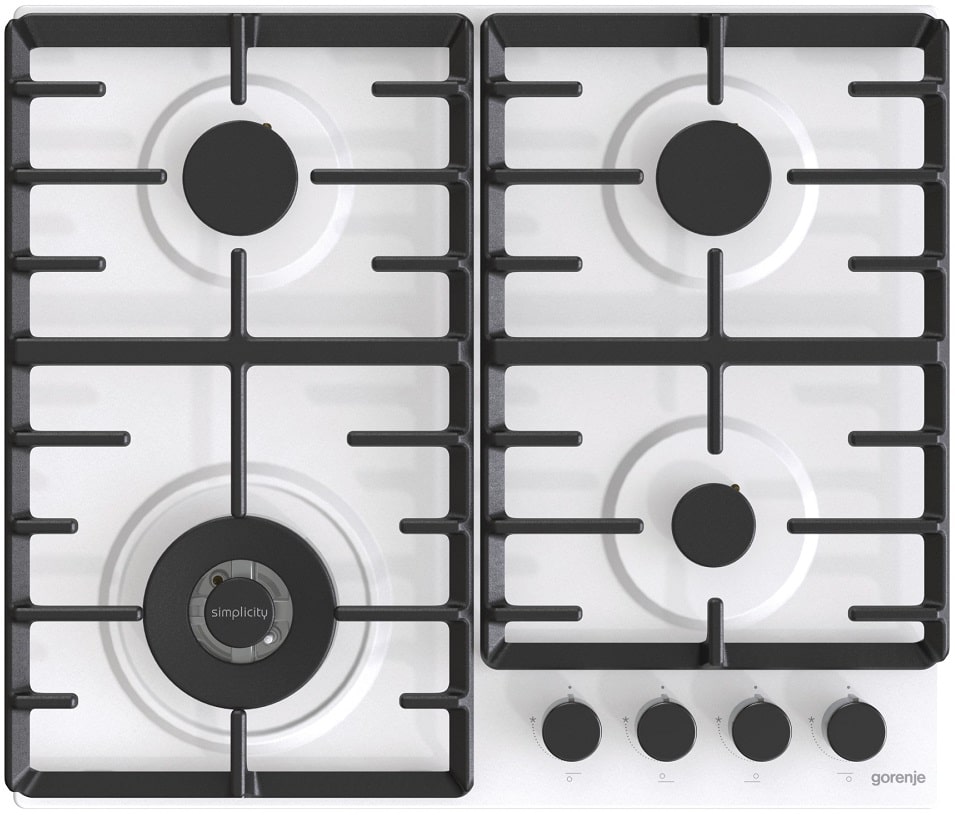 Независимая газовая варочная панель Gorenje GW642SYW относится к новому типу приборов. Она отличается эргономичностью и хорошим функционалом для своего вида техники. Так, например, у данной и схожих моделей, удобная система управления. Такое решение позволяет её устанавливать в столешницу не у самого края. Даже его работают все конфорки, ручки остаются прохладными и риск обжечься о них минимизирован. Рядом с ними нанесены интуитивно понятные обозначения, помогающие регулировать интенсивность нагрева.