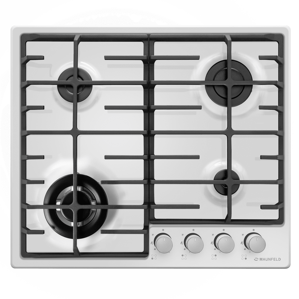 Панель оснащена 4 газовыми конфорками мощностью 3800, 1700, 2600, 1000 Вт. Благодаря специальной конструкции конфорок, они не перегревают чугунные решетки и ручки управления.