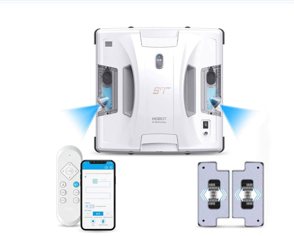 Hobot S7 PRO – новинка 2025. В этом роботе реализованы все передовые технологии бренда - уникальный двойной подвижный полирующий модуль с салфетками обеспечивает блестящую чистоту за один проход и экономию времени, вибрирующие движения салфеток 600 раз в минуту, увеличенная площадь двух чистящих салфеток, антистатический эффект, два ультразвуковых распылителя с измененным углом распыления, надежный инверторный двигатель Nidec японского производства, увеличенная зона всасывания робота (+40%) и мощность всасывания (4800 Па), работа на безрамных поверхностях различных типов, усовершенствованный протектор гусеничной ленты, прорезиненные боковые ролики для стабилизации движения, автоматическая регулировка пневматической площадки, интеллектуальное планирование маршрута, уменьшен уровень шума до 62 дБ, система датчиков безопасности, удобное управление со смартфона, встроенный источник бесперебойного питания, улучшенный винтовой разъем, голосовые оповещения и запись креативных сообщений на русском языке.