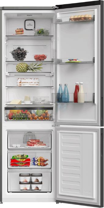 Общий полезный объем 367 л.,(холодильное отделение 267 л., морозильное отделение 100 л.), Dual Cool, годовое потребление 332 квт , климатический класс SN-T, возможность замораживания (кг/24ч): 2, уровень шума (дБ(А)): 38, Эко-режим, режим Holiday, режим Быстрая заморозка, LED освещение на левой стенке, стандартный компрессор, контроль уровня влажности, складная полка, цвет темная нержавеющая сталь