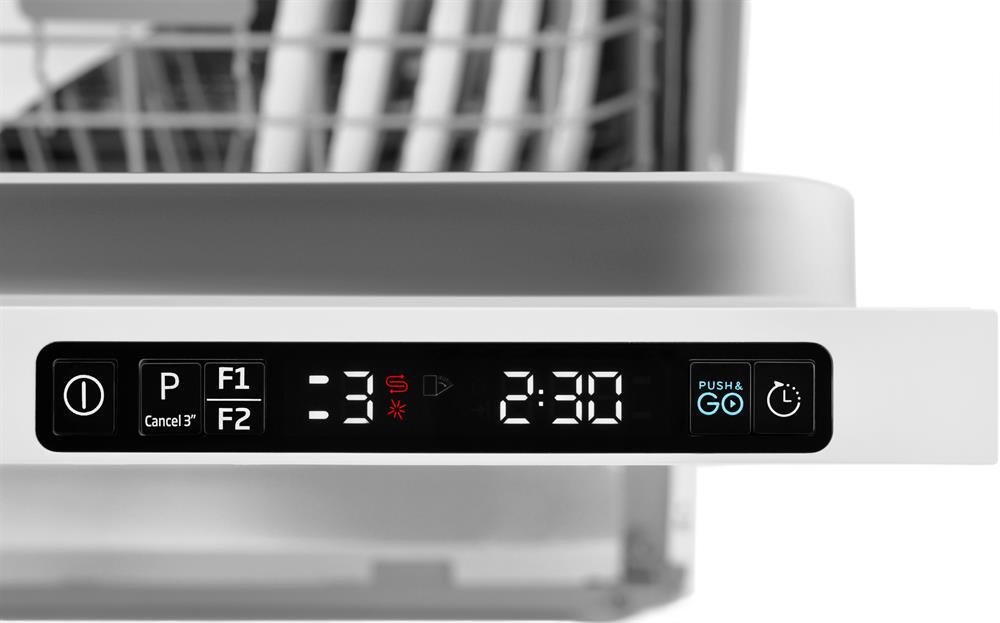 Вместимость 15 комплектов посуды, уровень шума 45 Дб, среднее потребление воды за цикл 11,5 литров, 6 программ, коллекторный мотор, полная защита от протечек Аквастоп, кнопочный тайм дисплей Е5, отсрочка запуска 1-24 часа, режим половинной загрузки, функция усиленной сушки, проекция луча на пол, автооткрывание дверцы, 3-я корзина