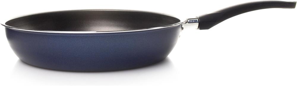 Сковорода Сатин диаметром 26 см простая, легкая и надежная посуда на каждый день по доступной цене. Европейское антипригарное покрытие внутри надежно защищает еду от пригорания, внешний слой декоративного покрытия также имеет антипригарные свойства, легко моется и долго сохраняет аккуратный вид и насыщенный синий цвет. Прочный корпус из штампованного алюминия с эргономичной бакелитовой ручкой делает использование сковороды удобным и безопасным.