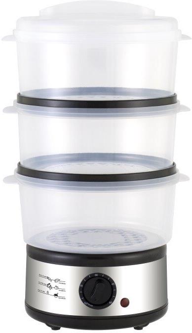 Электрическая пароварка; Мощность: 800 Вт; Объём всех ёмкостей: 7,5 л; Таймер на 60 минут; Управление: механическое; Материал корпуса: пластик, нержавеющая сталь; Нагревательный элемент из нержавеющей стали; Сеть: 220-240В, 50/60Гц,