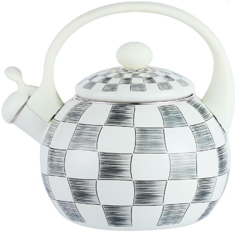 Эмалированный чайник; Объем: 2,5 л; Удобная ручка, не нагревается; Носик со свистком и защитным кольцом; 3-х слойное внутреннее и внешнее покрытие; Неповторимый дизайн; Можно мыть в посудомоечной машине; Подходит для всех видов плит, включая индукцию