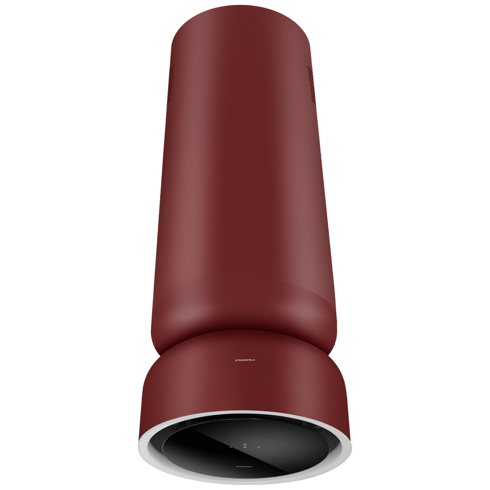 Вытяжка выполнена в форме элегантной вертикальной трубы. Её корпус имеет однородную, гладкую поверхность, что подчёркивает целостность и лаконичность дизайна, придавая прибору современный и сдержанный вид, идеально вписывающийся в различные стили интерьера.
