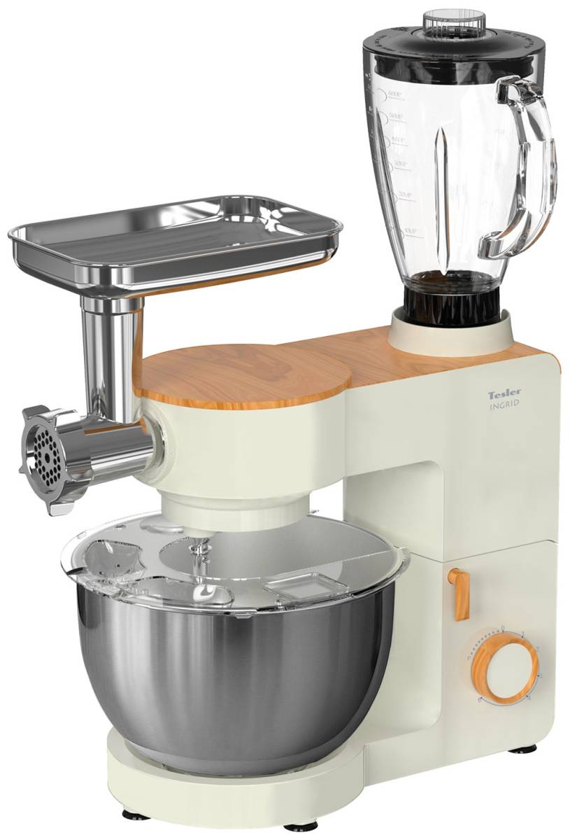 Tesler KM-1640 мощная и многофункциональная кухонная машина, совмещающая планетарный миксер, блендер и мясорубку.